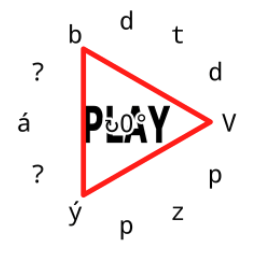 Následuje těžký nápadový krok, který se dá obejít věštěním začátku tajenky nebo vyčekáním nápovědy. PLAY je název tlačítka různých přehrávačů a má svůj ustálený symbol: trojúhelník, často rovnostranný, ukazující jedním vrcholem doprava, často je celý v kolečku. Když si ho představíme v prvním kruhu, vypadá to nějak takto: